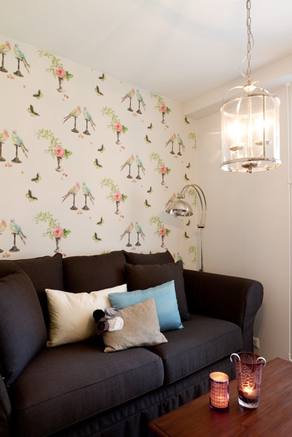 For our entryway I'm loving the Nina Campbell Perroquet Wallpaper. I have seriously adored this since I saw the black version in Rita Konig's entry way in Domino. I'm thinking of doing the light color way because....